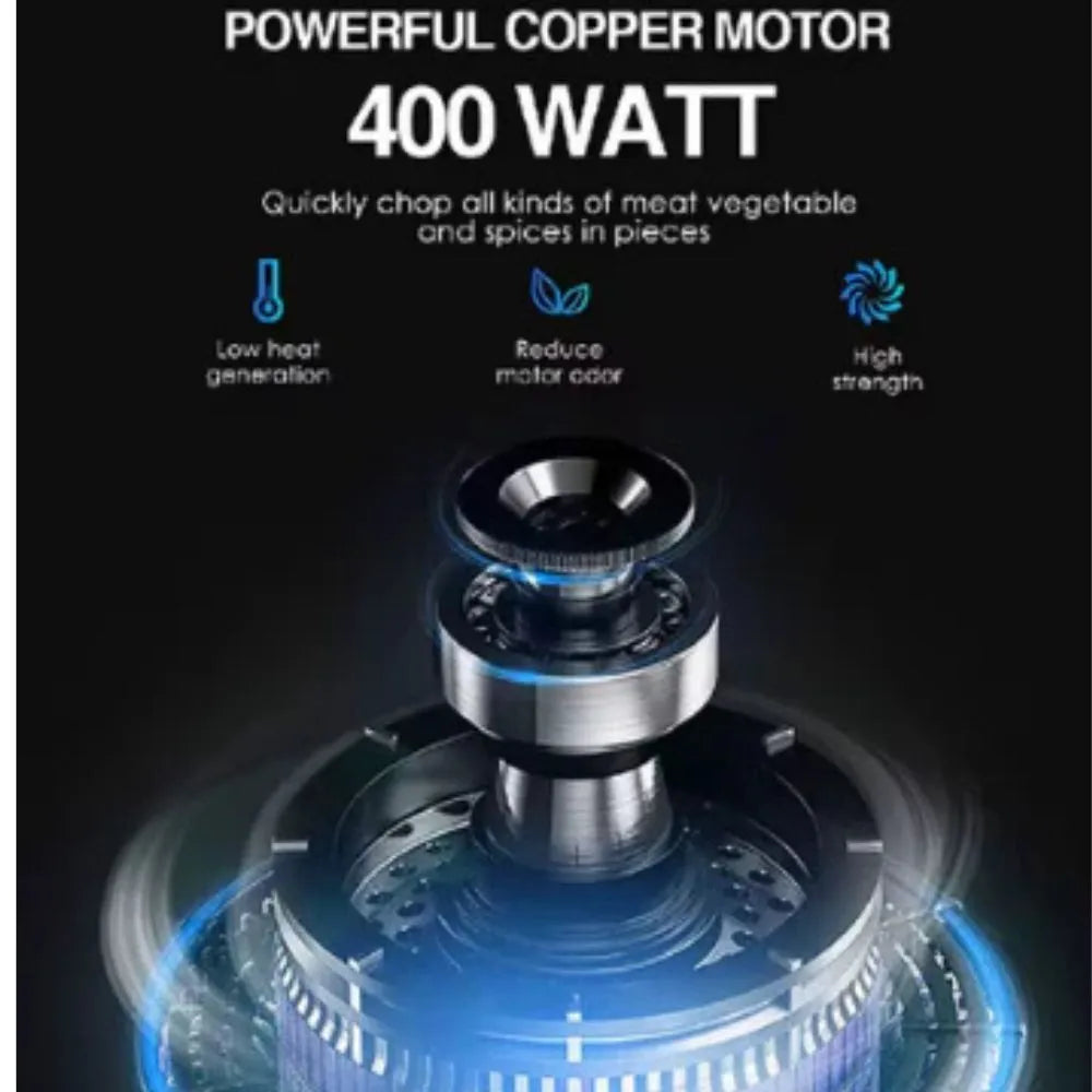 - Portencia de 400W para picar y procesar rapido y sin esfuerzos.